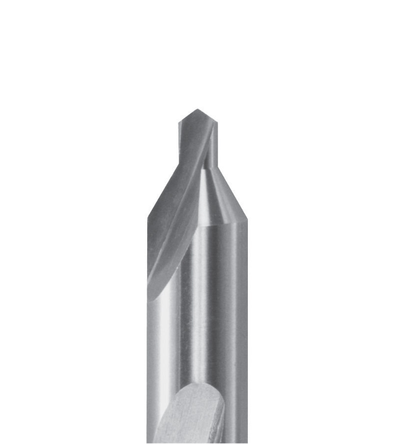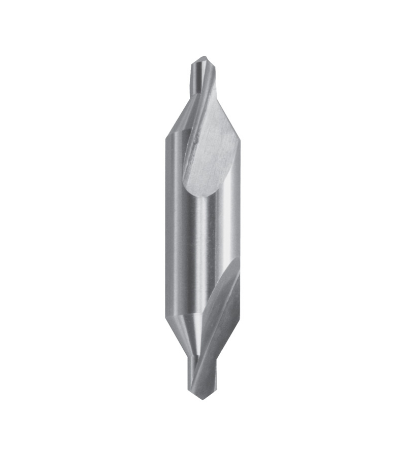 Broca de centrar forma “A” corte derecho, afilado std. 118º. Destalonado rectificado con ángulo de 60º, dureza 63-65 HRc. Acero rápido M2.
