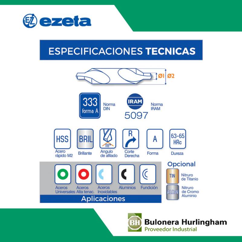 | >145000100000000 | MECHA DE CENTRO DIN 333 Forma A 1.00 (L:31,5mm) EZETA |