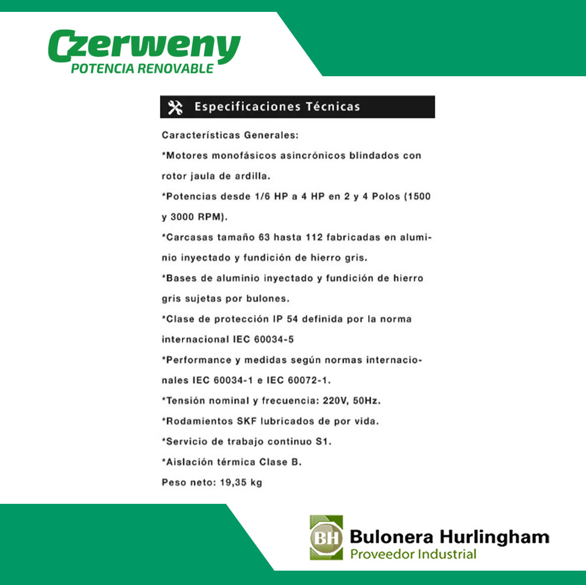 *Potencias desde 1/6 HP a 4 HP en 2 y 4 Polos (1500 y 3000 RPM).