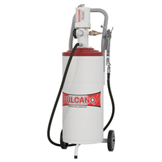 Equipo portátil para engrase de automotores, máquinas agrícolas e industriales. Bomba de engrase muy robusta con cabezal de fundición, palanca con manopla ergonométrica y depósito de chapa laminada. Vástagos de acero rectificado.