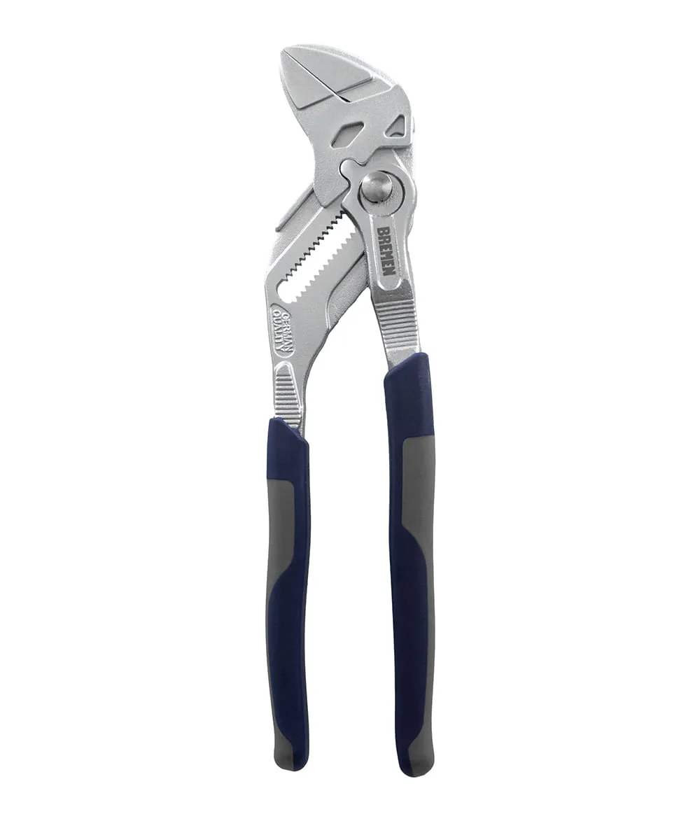 Llave Pico de Loro 10" con Ajuste Rápido - Bremen 8127 Pinza profesional de 10" (250 mm) fabricada en Cromo Vanadio de alta resistencia. Cuenta con un sistema de ajuste rápido por botón y cremallera doble que ofrece 24 posiciones de apertura. Su diseño de mandíbula auto-ajustable asegura un agarre firme en tubos, tuercas y piezas planas sin deslizamientos.
