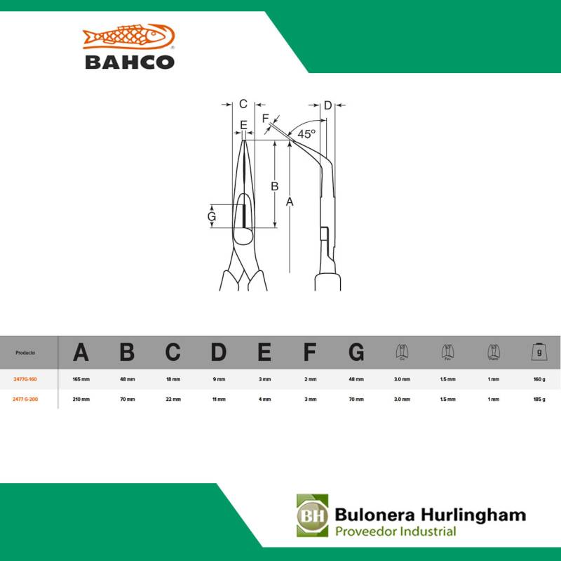 | >BAH25720 | PINZA DE PUNTA CURVA 8" 2477G-200A -- BAHCO |