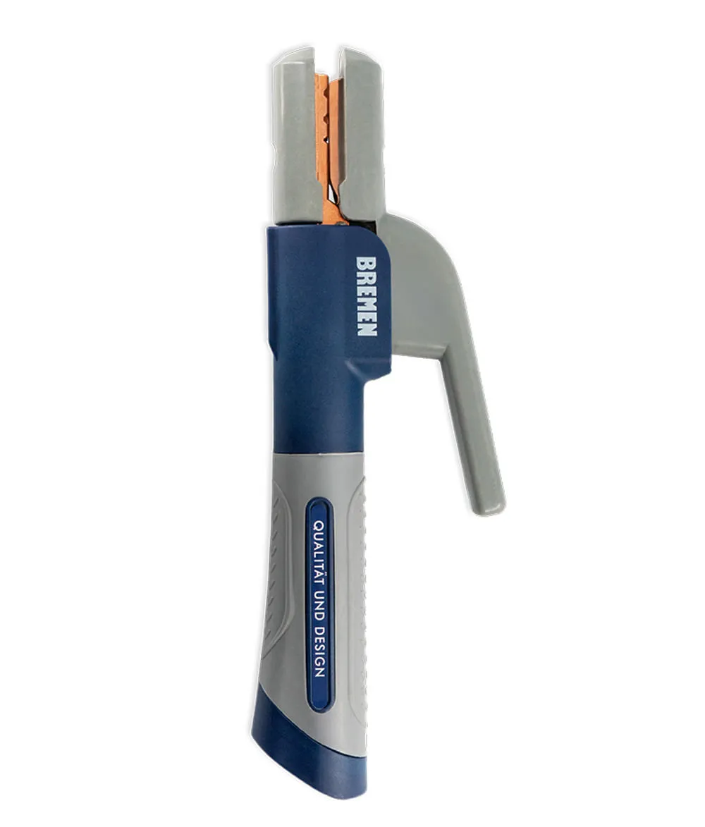 Sujeción del electrodo mediante resorte, que permite un cambio rápido y un agarre firme.
