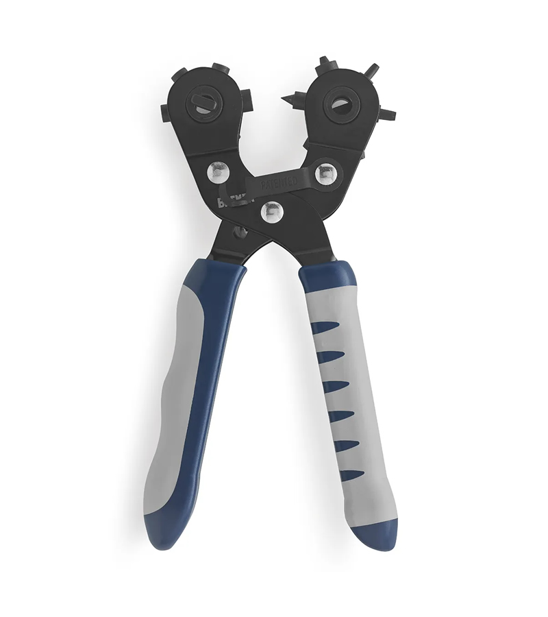 La pinza sacabocados y coloca broches de BREMEN, es una herramienta muy práctica y fácil de utilizar, con la que es posible realizar orificios en materiales como el cuero, plástico o cartón.