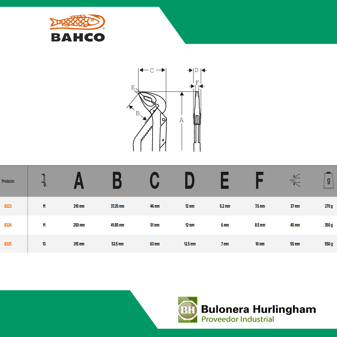 Codigo de Bahco: 8223 8224A 8225A