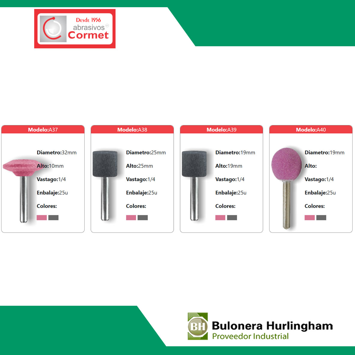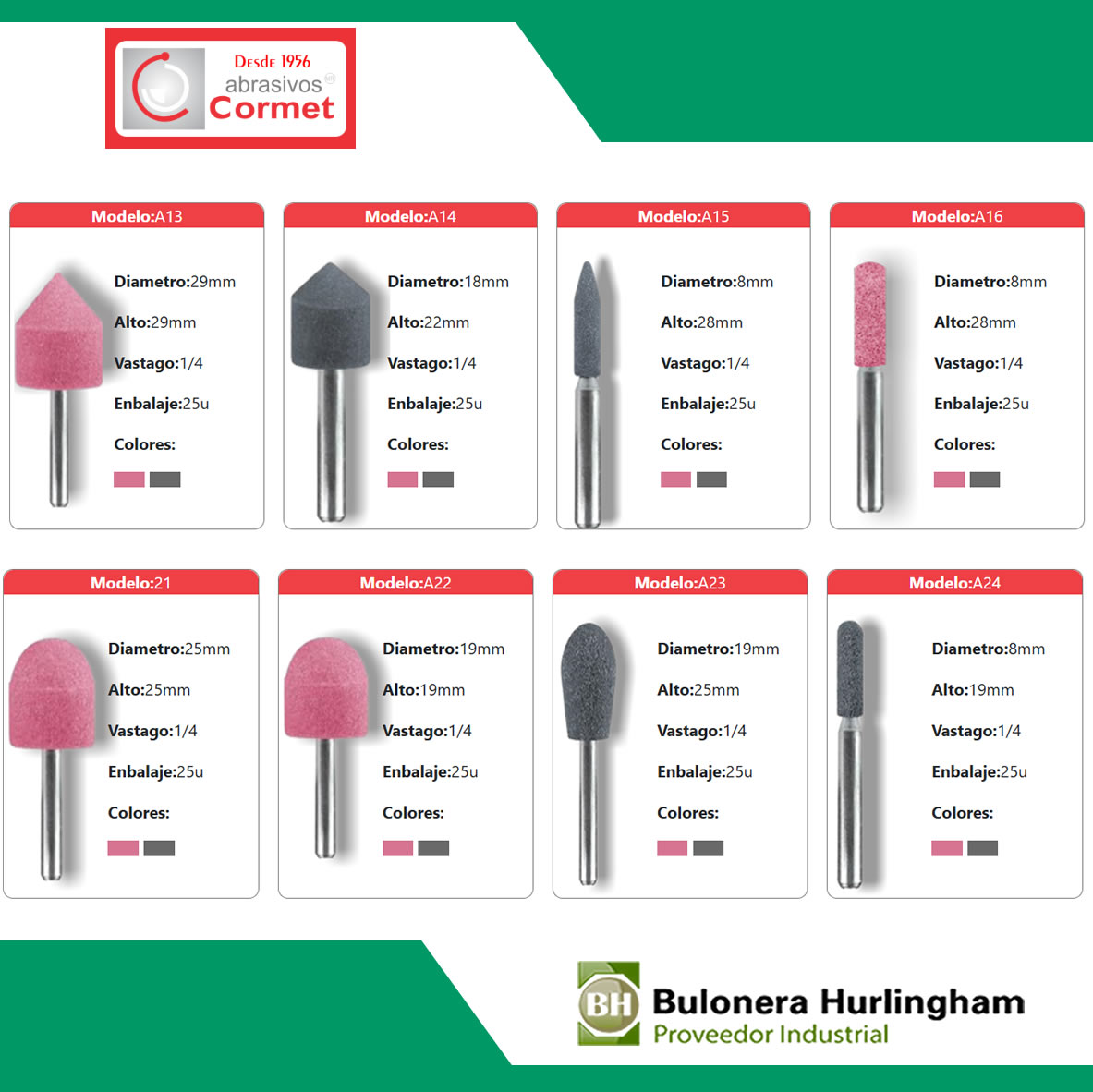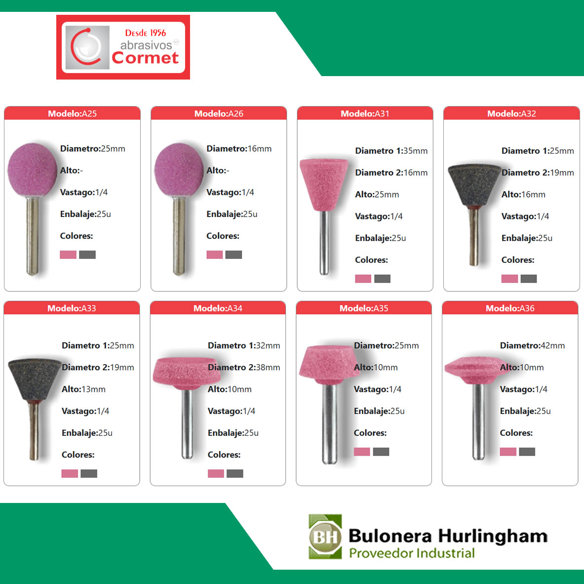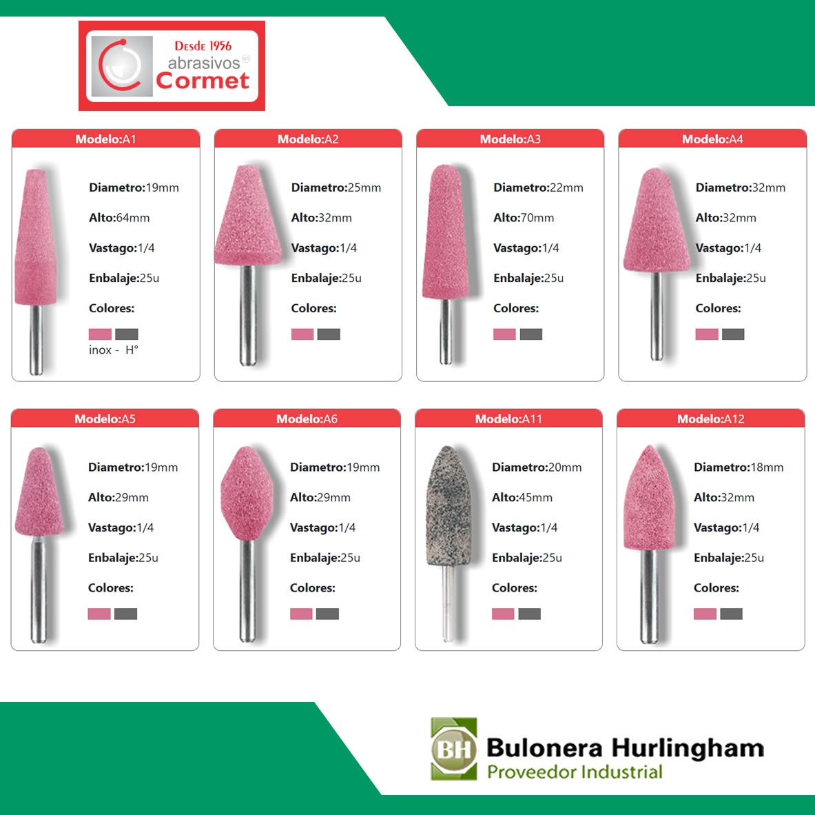 *En las fotos encontrará el formato de cada punta, tenga en cuenta que esta publicación es de puntas montadas grises (óxido aluminio), en caso de requerir las puntas montadas rosas (inoxidable) consulte a su vendedor precio y cantidades mínimas.