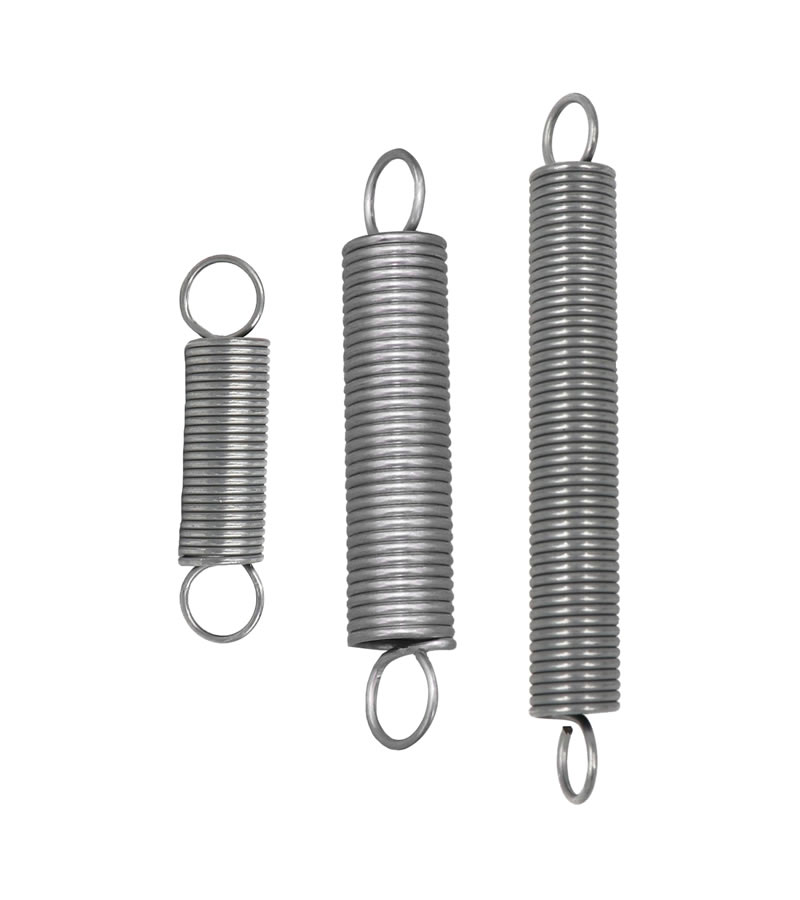 También conocidos como resortes de tracción, están diseñados para operar bajo fuerza tensil. Se estiran al aplicarse una carga, generando una fuerza que busca devolverlos a su longitud original. Se usan en puertas, frenos, máquinas industriales y sistemas de sujeción. Incorporan ganchos o lazos en los extremos para su anclaje.