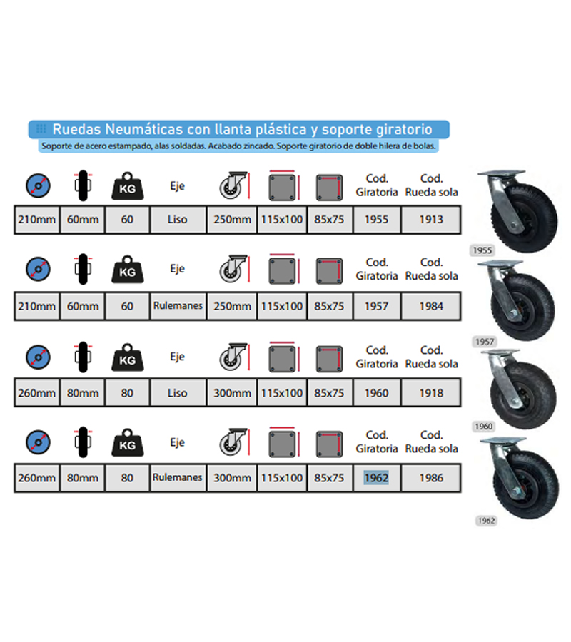| >1962 | RUEDA 260MM X 80MM NEUMÁTICA GIRATORIA (C/80KG) 1962 |