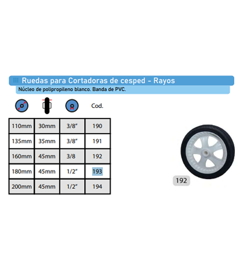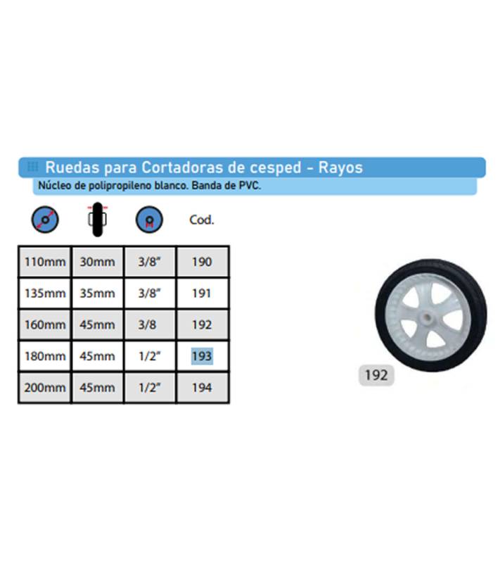 | >193 | RUEDA 180MM X 45MM BLANCA PLÁSTICA P/CORTADORA DE CESPED 193 |