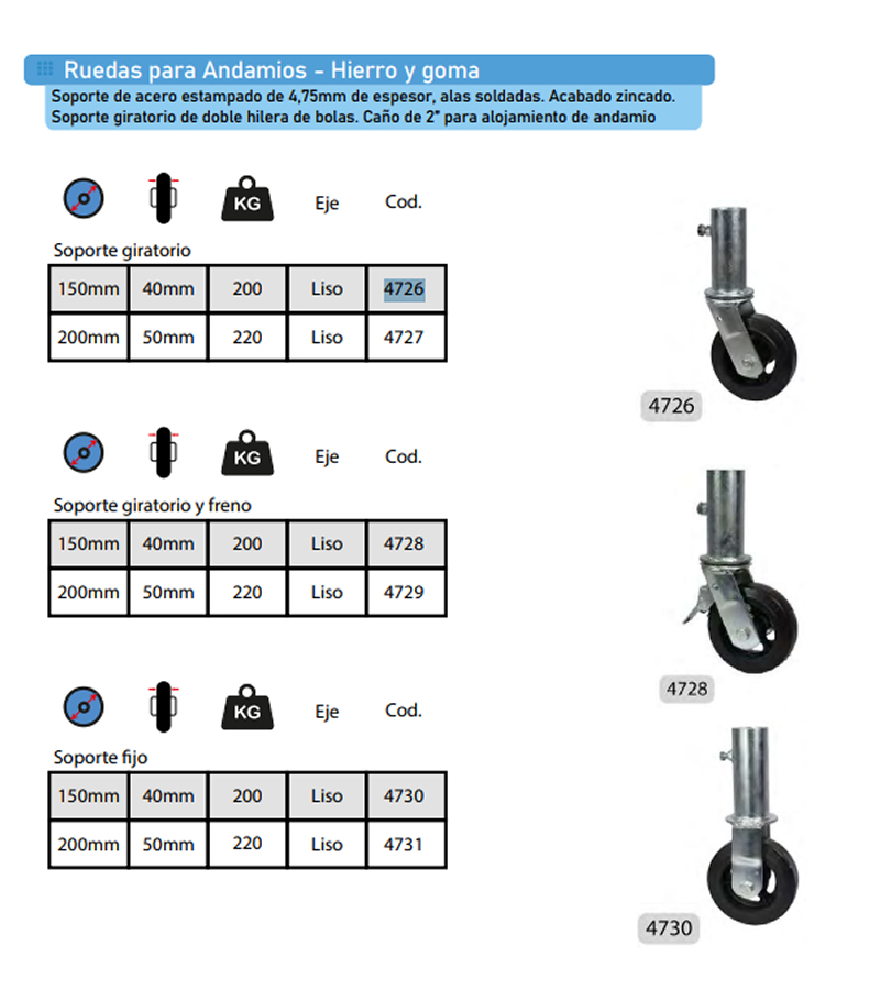 | >4730 | RUEDA 150MM X 40MM ANDAMIO HIERRO/GOMA FIJA 4730 |