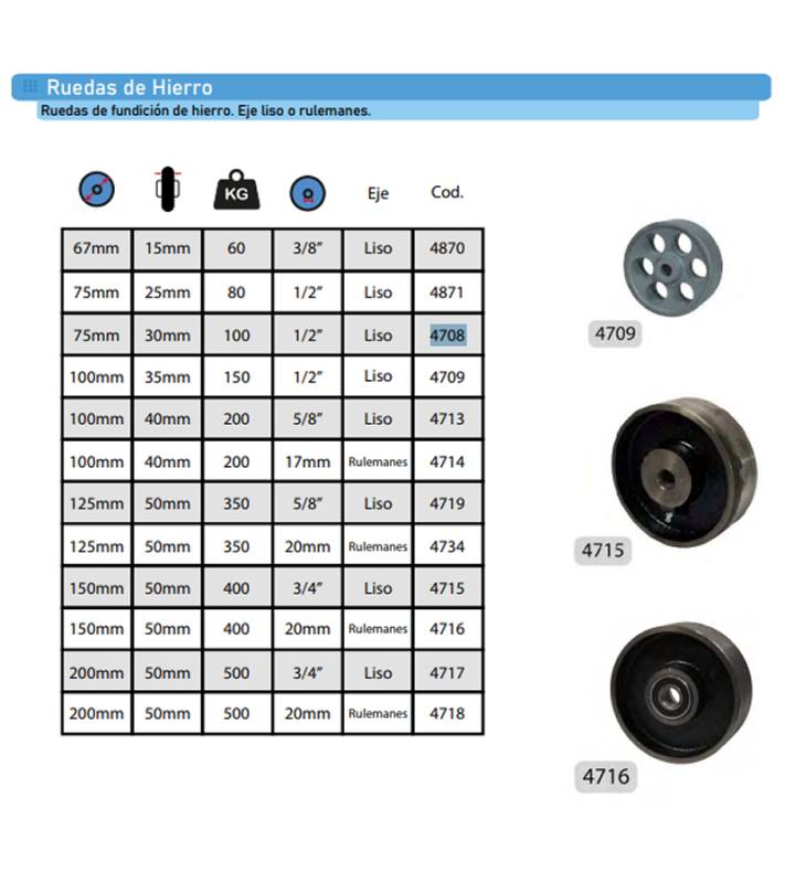 | >4708 | RUEDA 75MM X 30MM HIERRO (C/100KG) 4708 |
