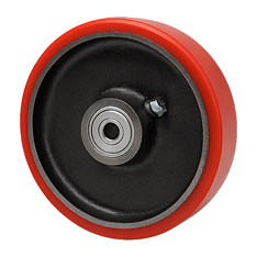 Aro de poliuretano. Núcleo de fundición de hierro. Eje liso o rulemanes.