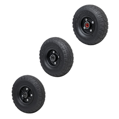 Ruedas neumáticas con llantas plásticas.