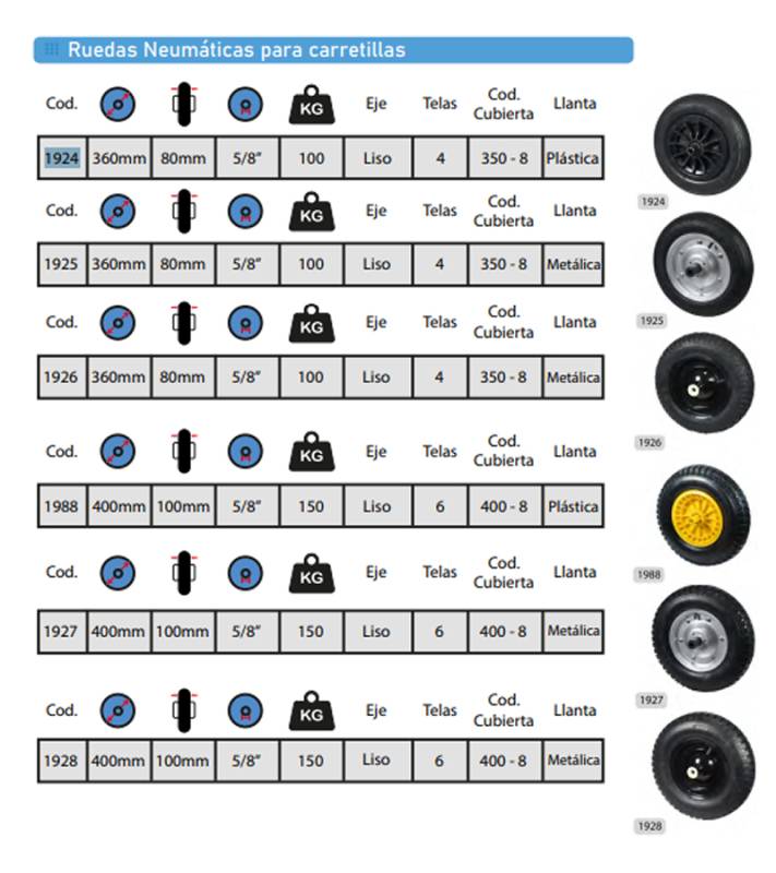 | >1927 | RUEDA 400MM X 100MM NEUMÁTICA METÁLICA P/CARRETILLA (C/100KG) 1927 |