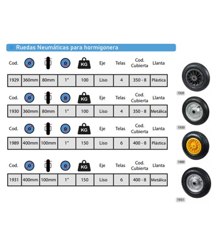 | >1931 | RUEDA 400MM X 100MM NEUMÁTICA METÁLICA P/HORMIGONERA (C/150KG) 1931 |