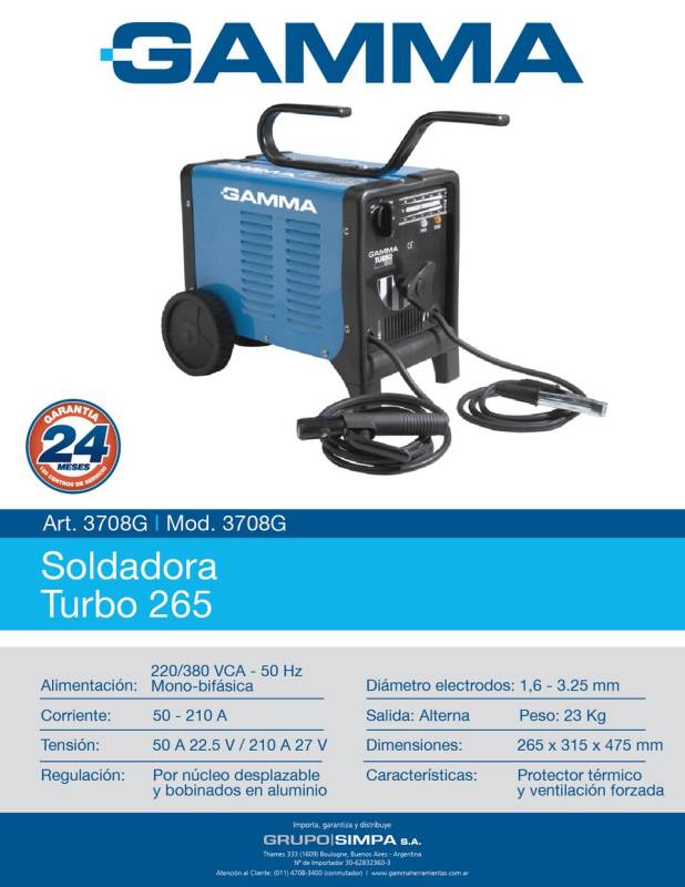 Diametro de electrodo: 1.6 - 3.25 mm (electrodo revestido )