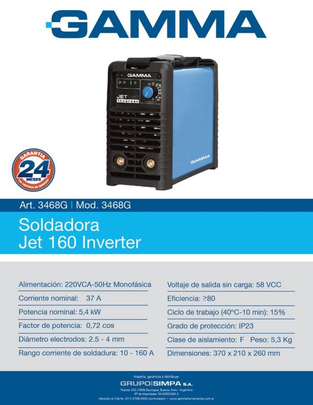 MMA/TIG Inverter 160 Ampers Gamma JET - 160