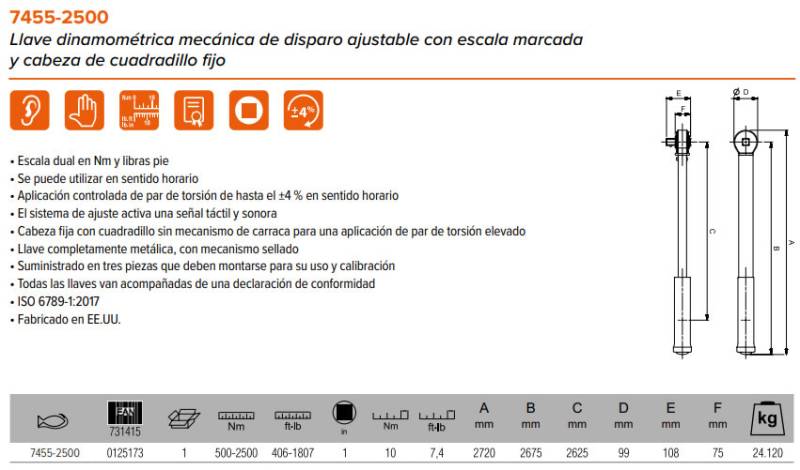 Torquimetro De Click 1 500 A 2500 Nm Bahco -- 7455-2500