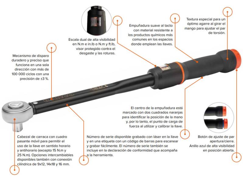 | >74WR-50 | TORQUIMETRO DE CLICK VENTANA 3/8" 10 A 50 Nm 74WR-50 BAHCO |
