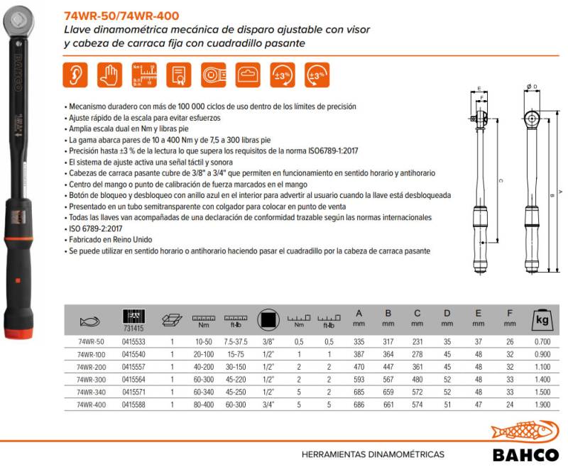 | >74WR-400 | TORQUIMETRO DE CLICK VENTANA 3/4" 80 A 400 Nm 74WR-400 BAHCO |