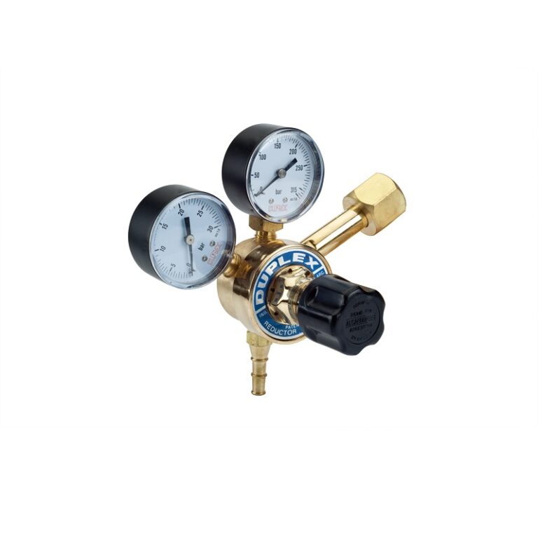 Válvula reductora de presión de doble lectura diseñada para el manejo seguro de acetileno en procesos de soldadura y oxicorte. Fabricado en bronce forjado, este equipo DUPLEX cuenta con dos manómetros independientes para monitorear simultáneamente la carga del cilindro y la presión de trabajo. Su robustez industrial y regulación precisa garantizan una llama estable y un entorno de trabajo seguro, siendo el estándar indispensable para talleres de herrería y plantas industriales de alta exigencia.