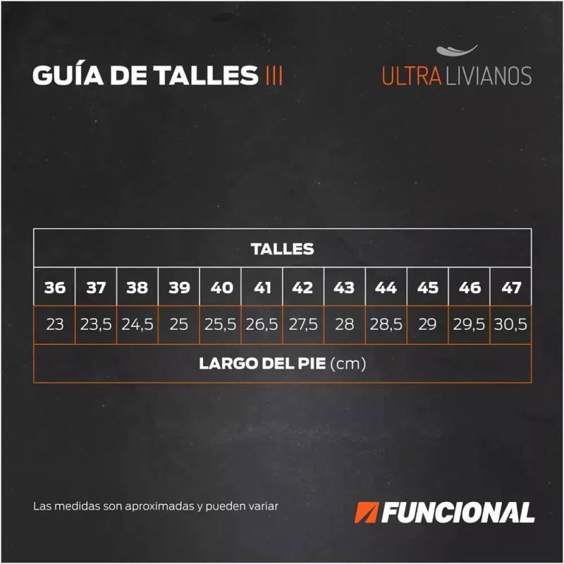 Talles del 36 al 49