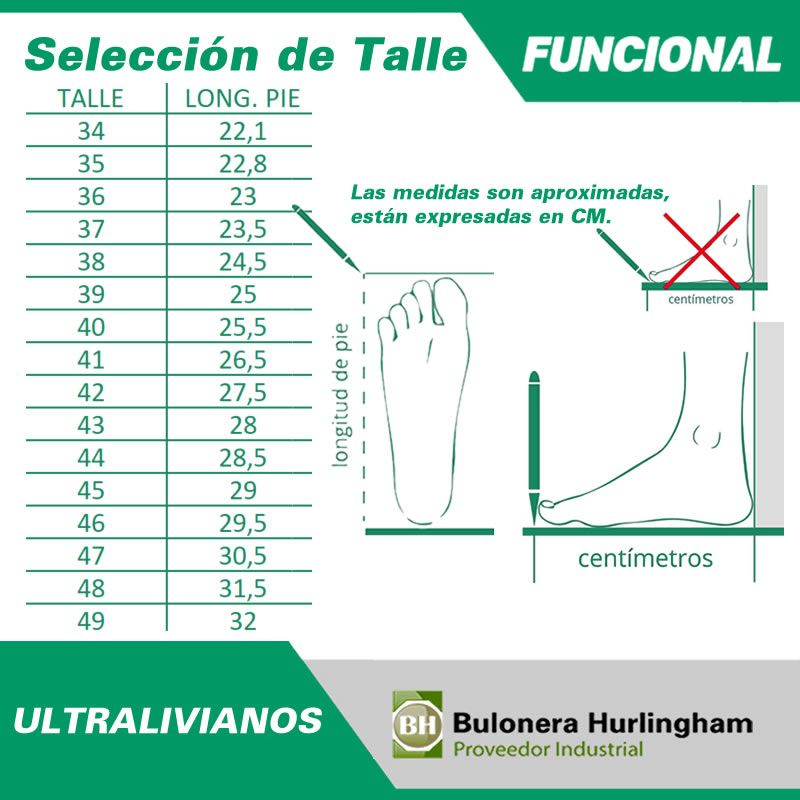 TABLA DE TALLE = LARGO DE PIE (EN CM)